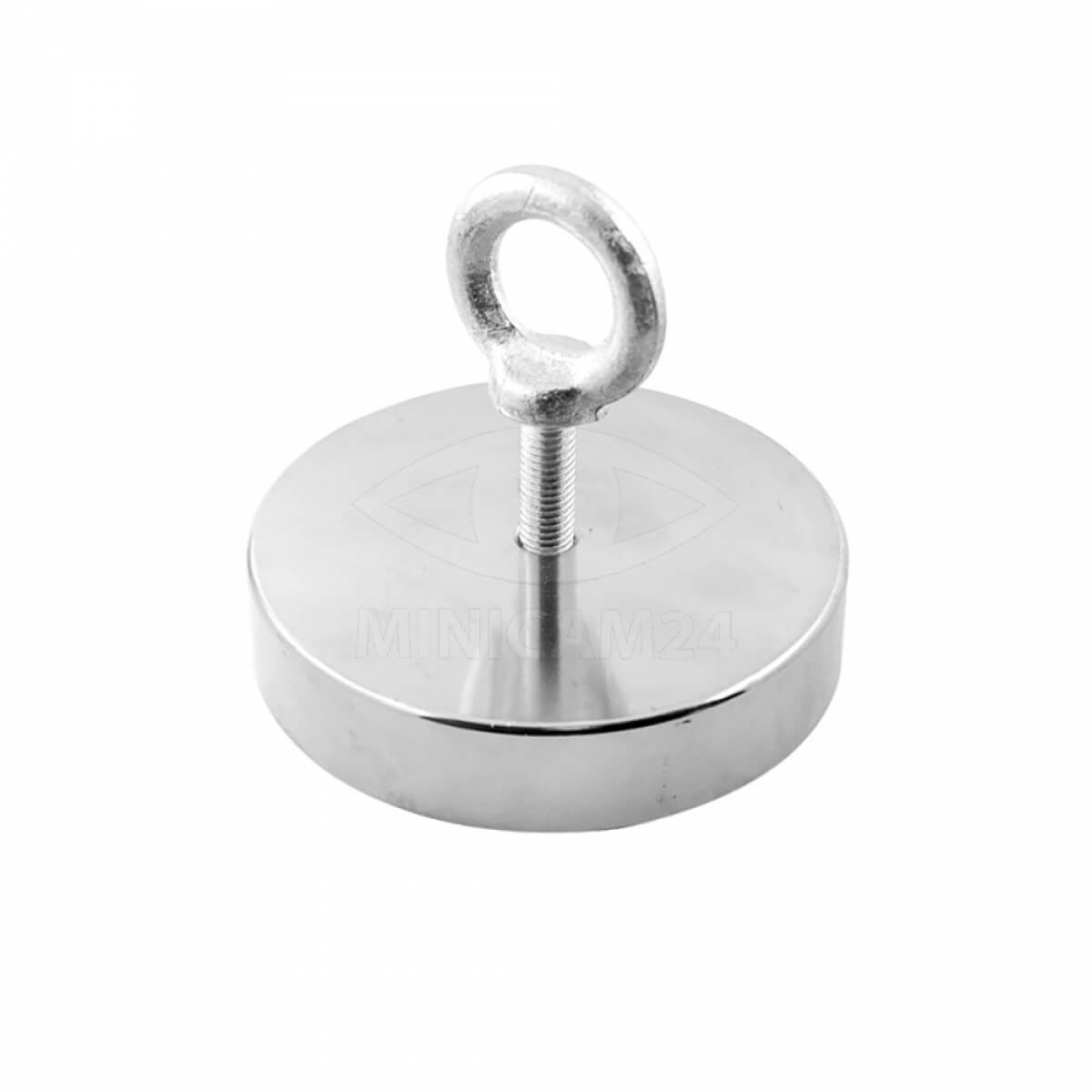 Поисковый магнит F200 позволяет извлечь металлические предметы из труднодоступных мест: колодцев, горных расщелин, водоемов. Сила сцепления в 240 кг дает возможность удерживать магнитом крупногабаритные объекты. Изделие изготовлено из сплава NdFeB (неодим-железо-бор). Сверху предусмотрен рым-болт для отрыва магнита от найденного предмета. После каждого использования с приспособления следует удалять ил, грязь, ржавчину и окалину. Магнит нельзя хранить рядом с ключами, банковским картами и радиоэлектроникой.